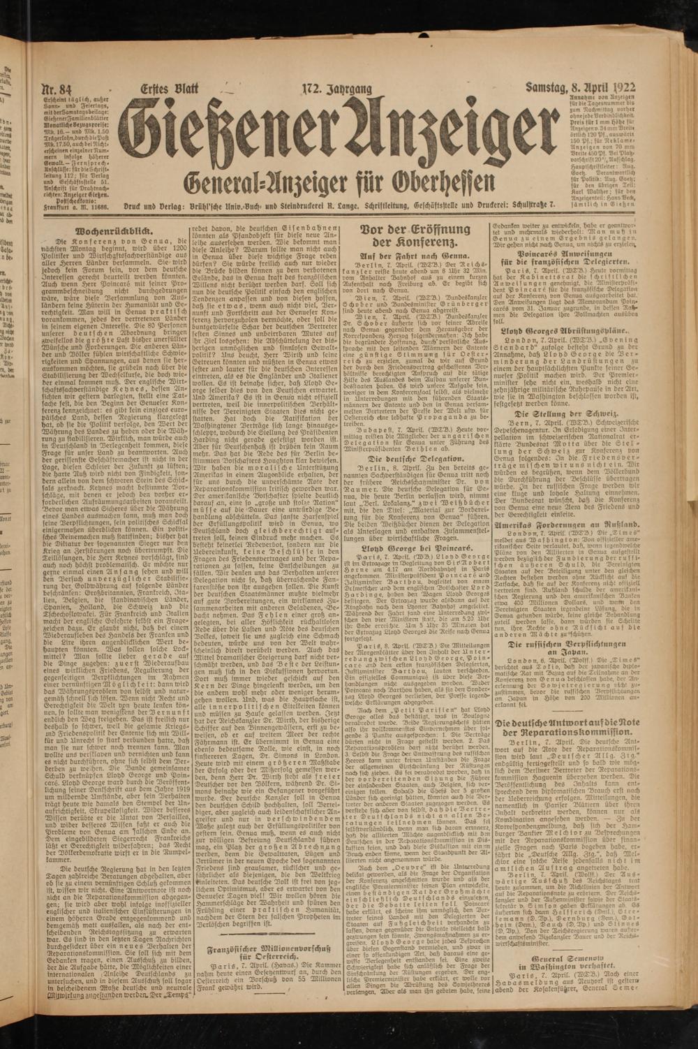 Gießener Anzeiger. 1868-1943