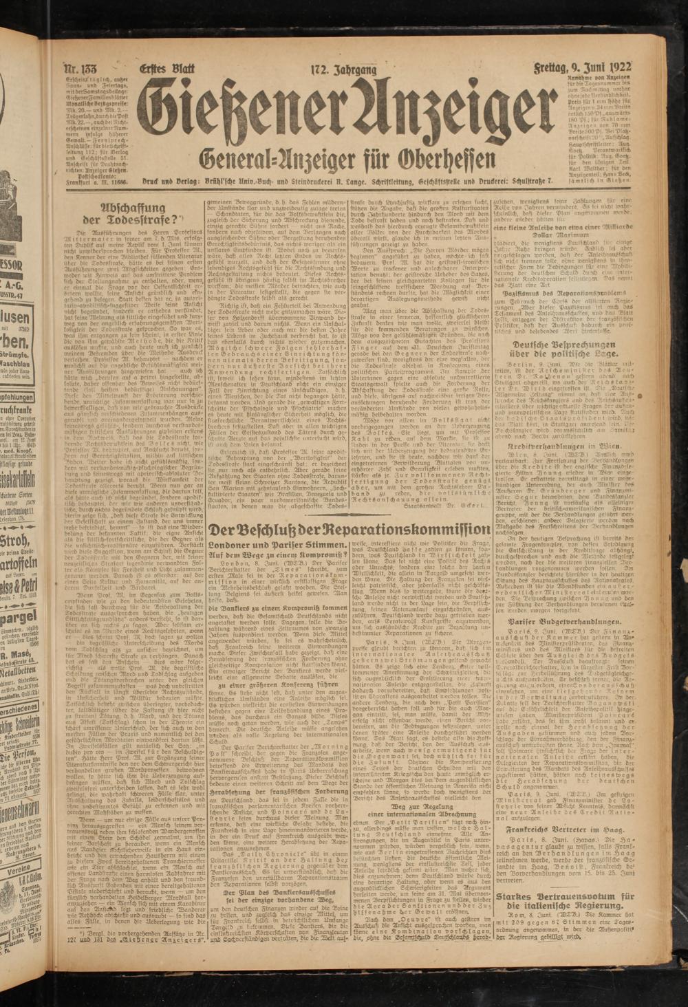 Gießener Anzeiger. 1868-1943