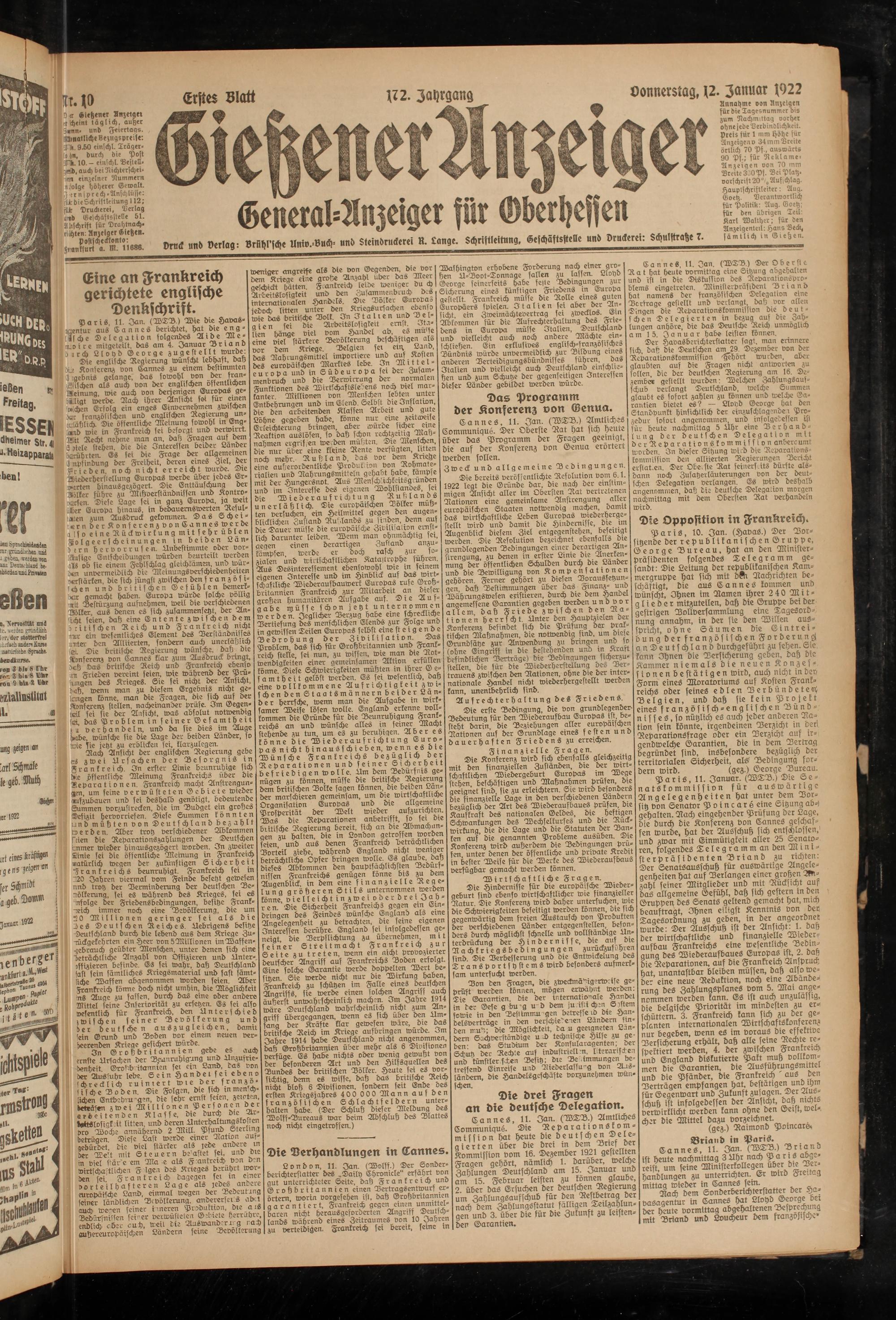 Gießener Anzeiger. 1868-1943