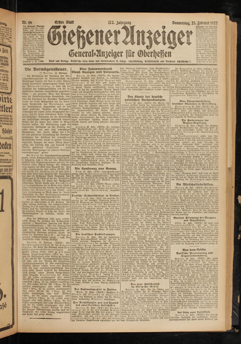 Gießener Anzeiger. 1868-1943