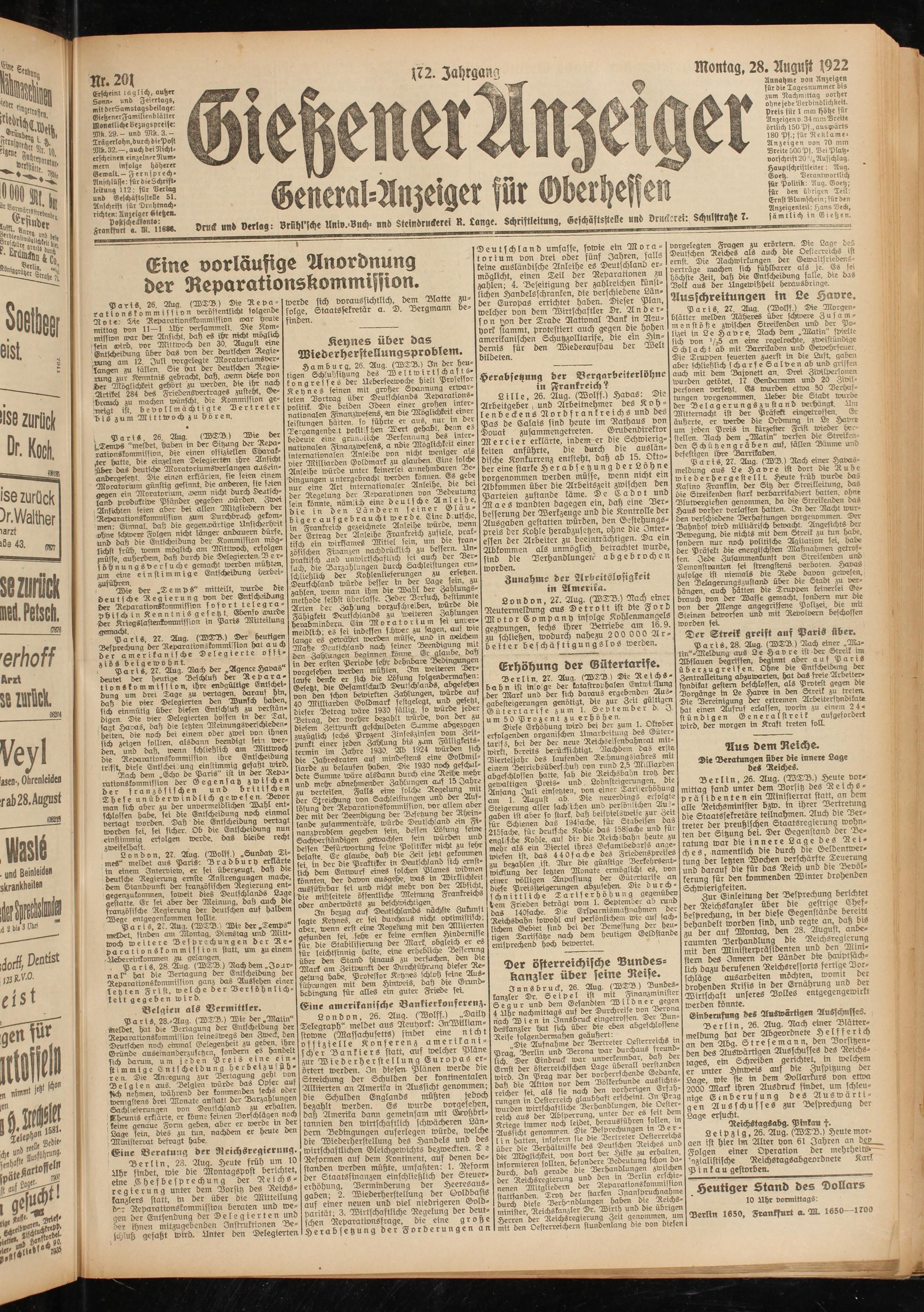 Gießener Anzeiger. 1868-1943