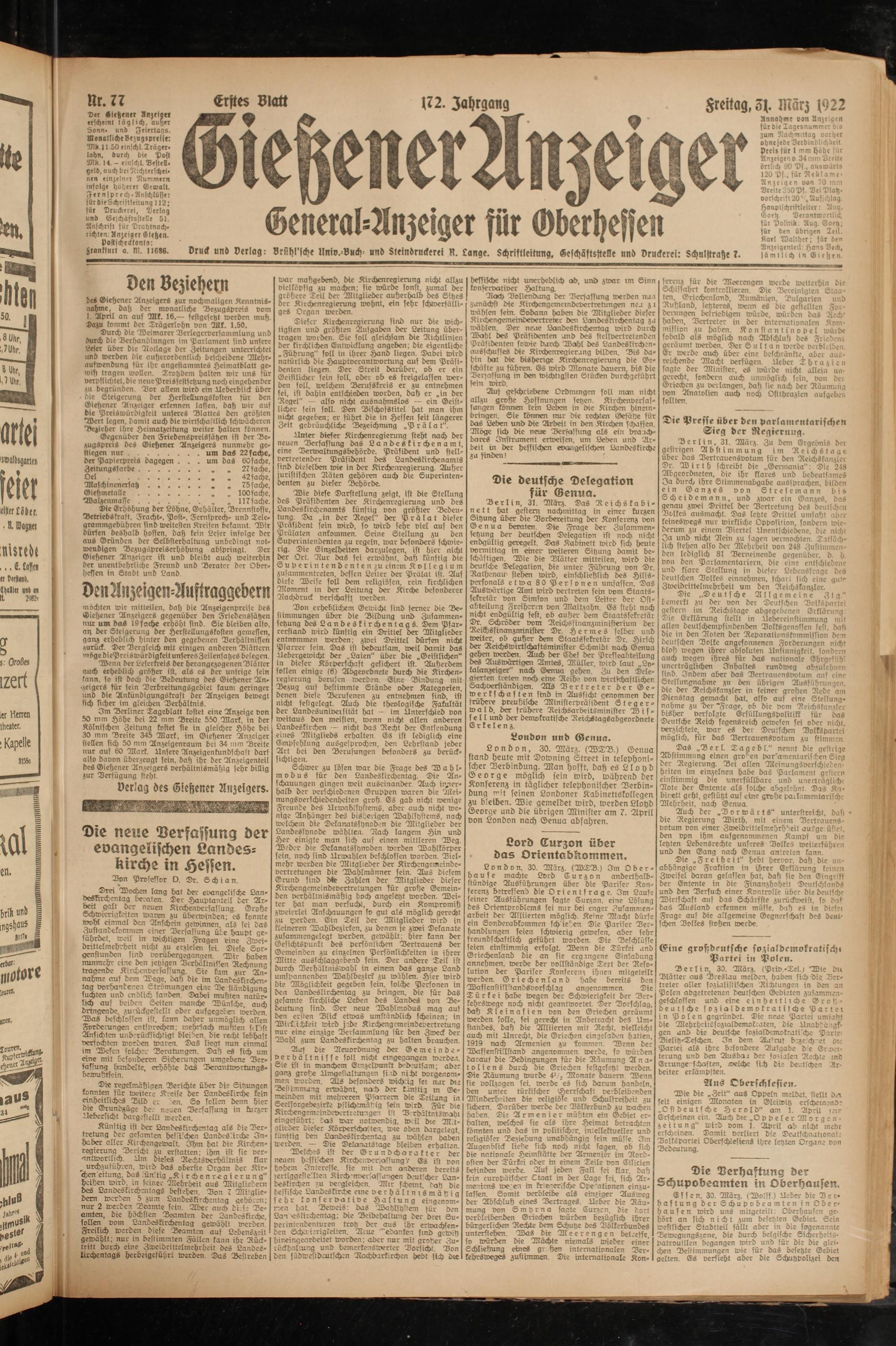 Gießener Anzeiger. 1868-1943
