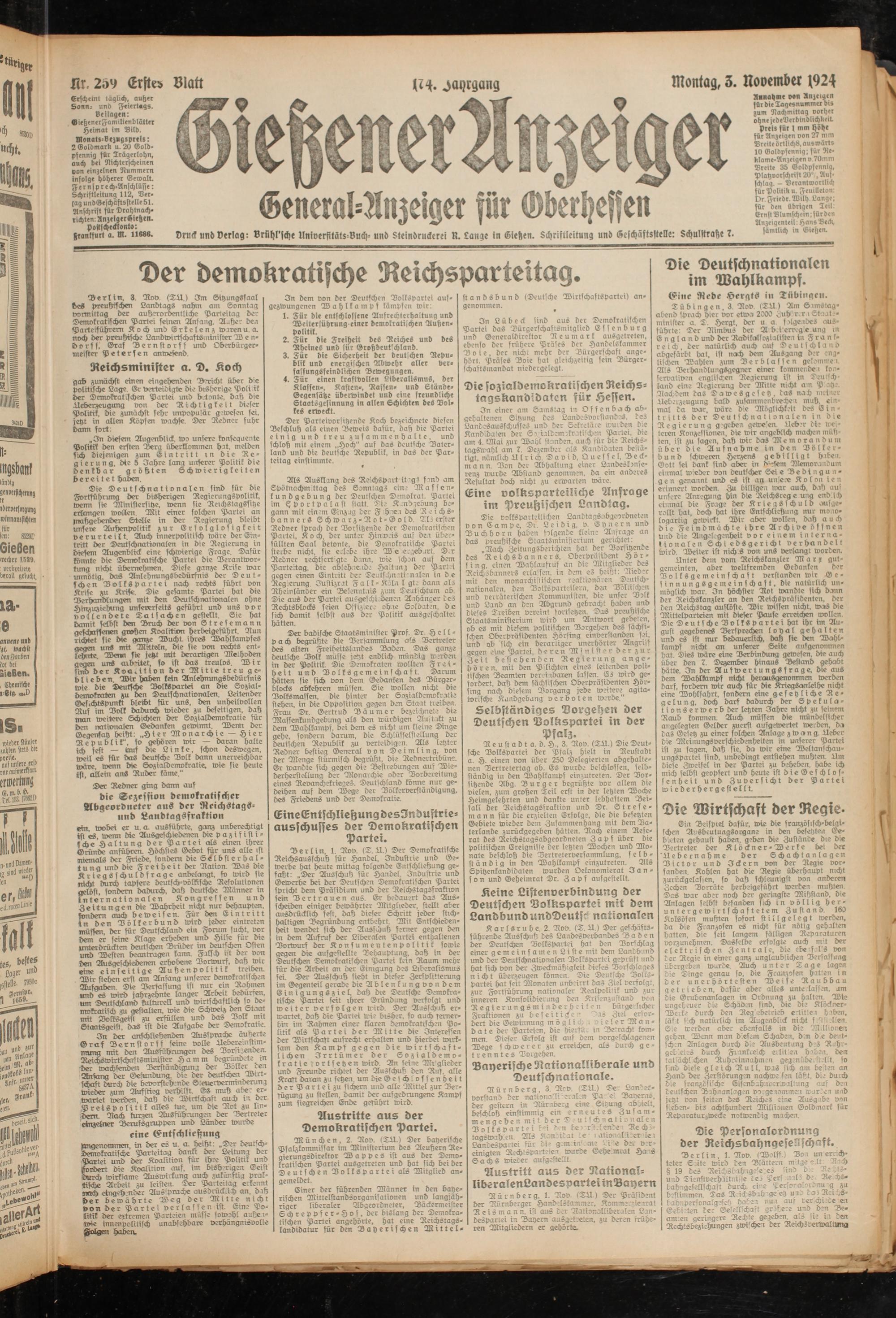 Gießener Anzeiger. 1868-1943