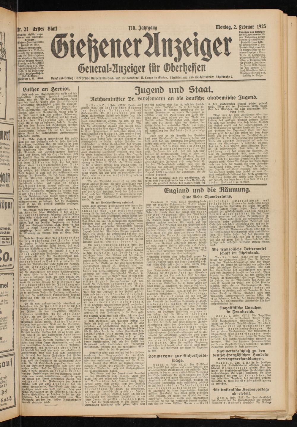 Gießener Anzeiger. 1868-1943