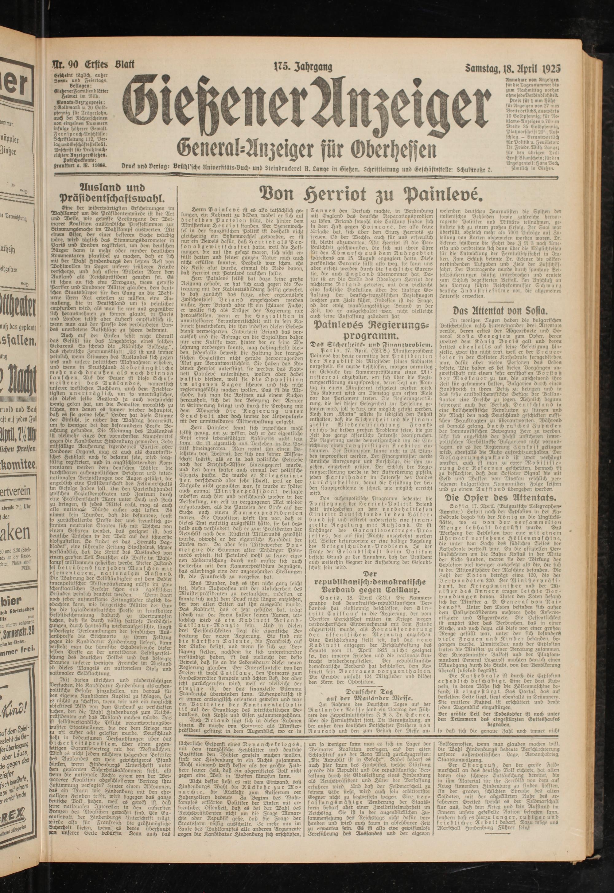 Gießener Anzeiger. 1868-1943