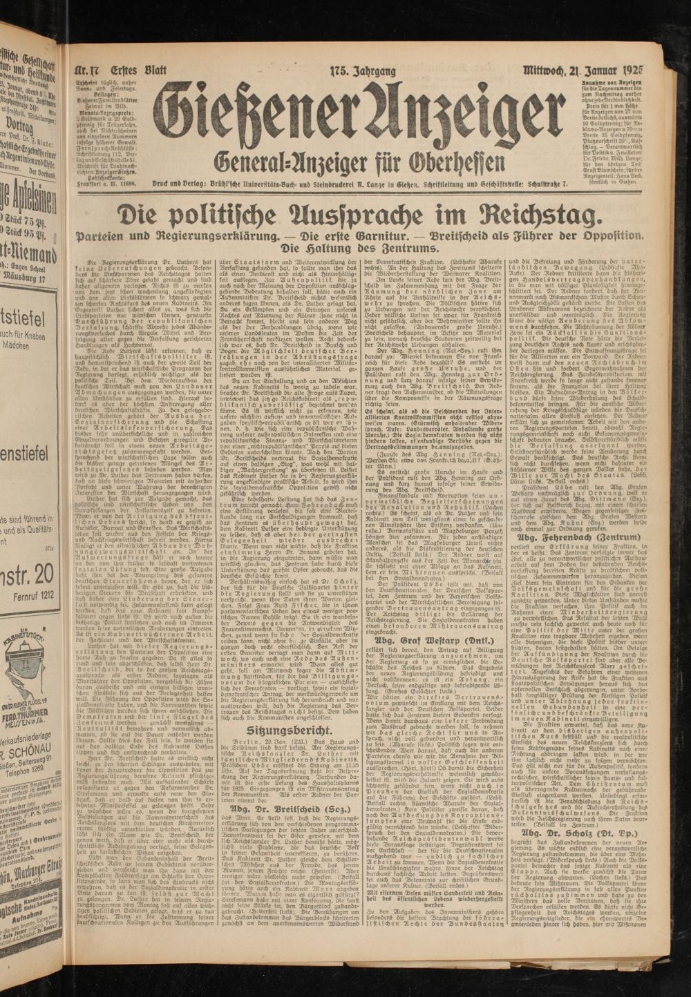 Gießener Anzeiger. 1868-1943