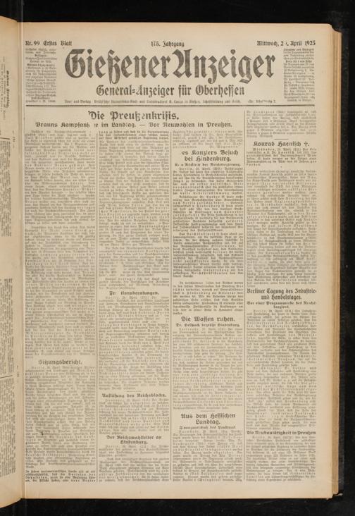 Gießener Anzeiger. 1868-1943
