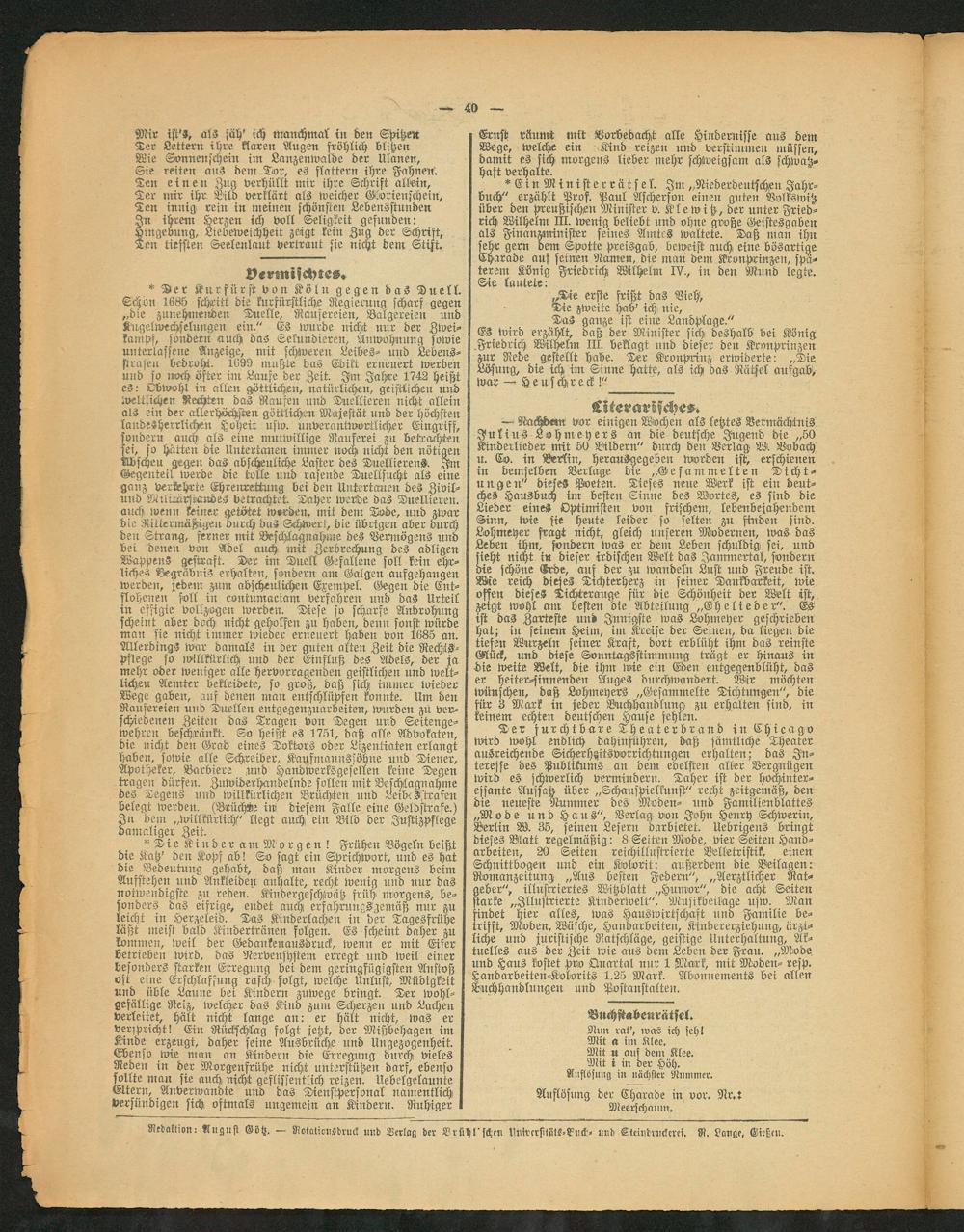 Zeitungen u. Zeitschriften