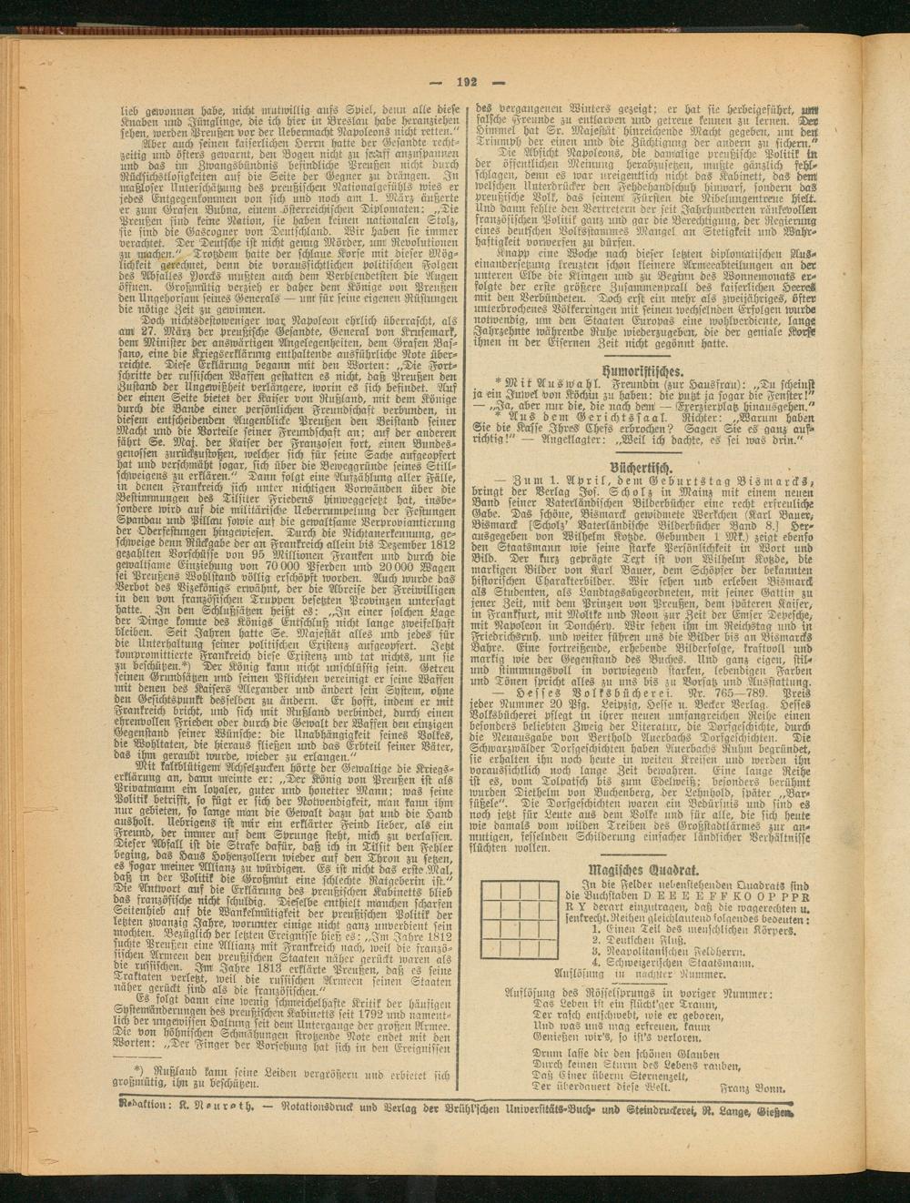 Zeitungen u. Zeitschriften