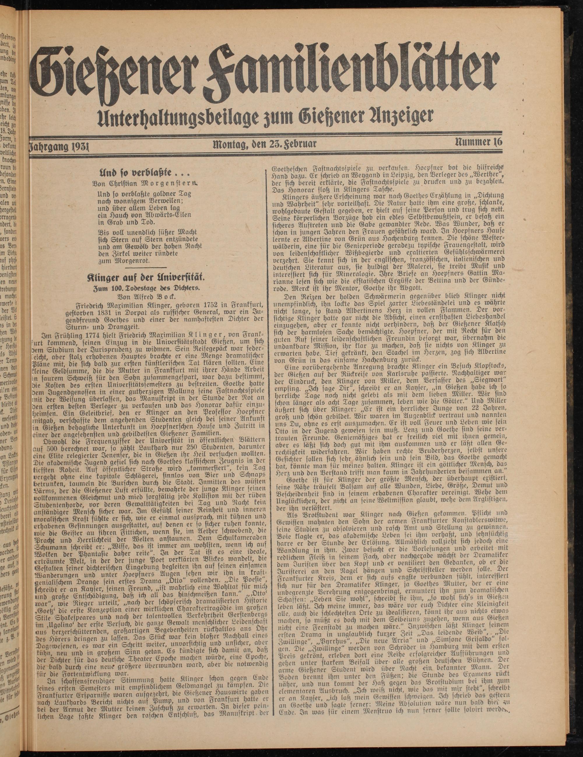 Gießener Familienblätter. 1914-1914