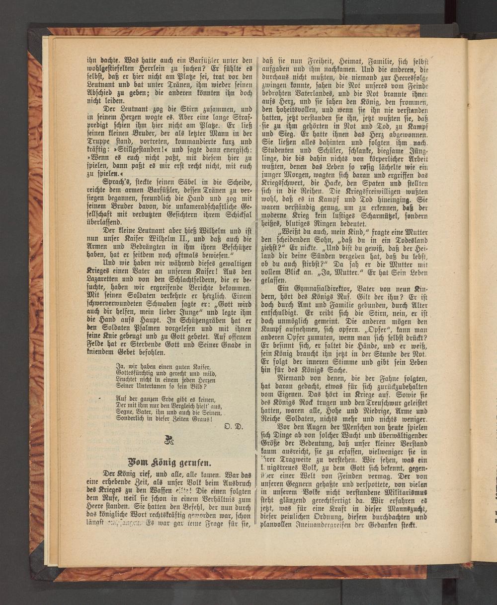 Der kleine Leutnant aber hieß Wilhelm und ist nun unser Kaiser Wilhelm II., und daß auch die Armen und Bedrängten in ihm ihren Beschützer haben, hat er seitdem noch oftmals bewiesen."