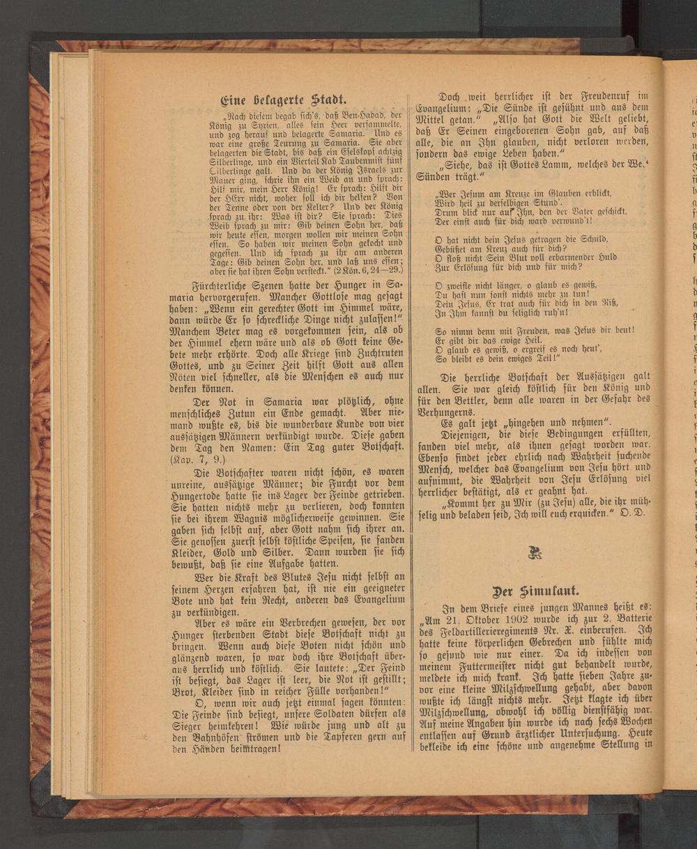 Aber es wäre ein Verbrechen gewesen, der vor Hunger sterbenden Stadt diese Botschaft nicht zu bringen. Wenn auch diese Boten nicht schön und glänzend waren, so war doch ihre Botschaft über- aus herrlich und köstlich. Sie lautete: „Der Feind ist besiegt, das Lager ist leer, die Not ist gestillt; Brot, Kleider sind in reicher Fülle vorhanden!"