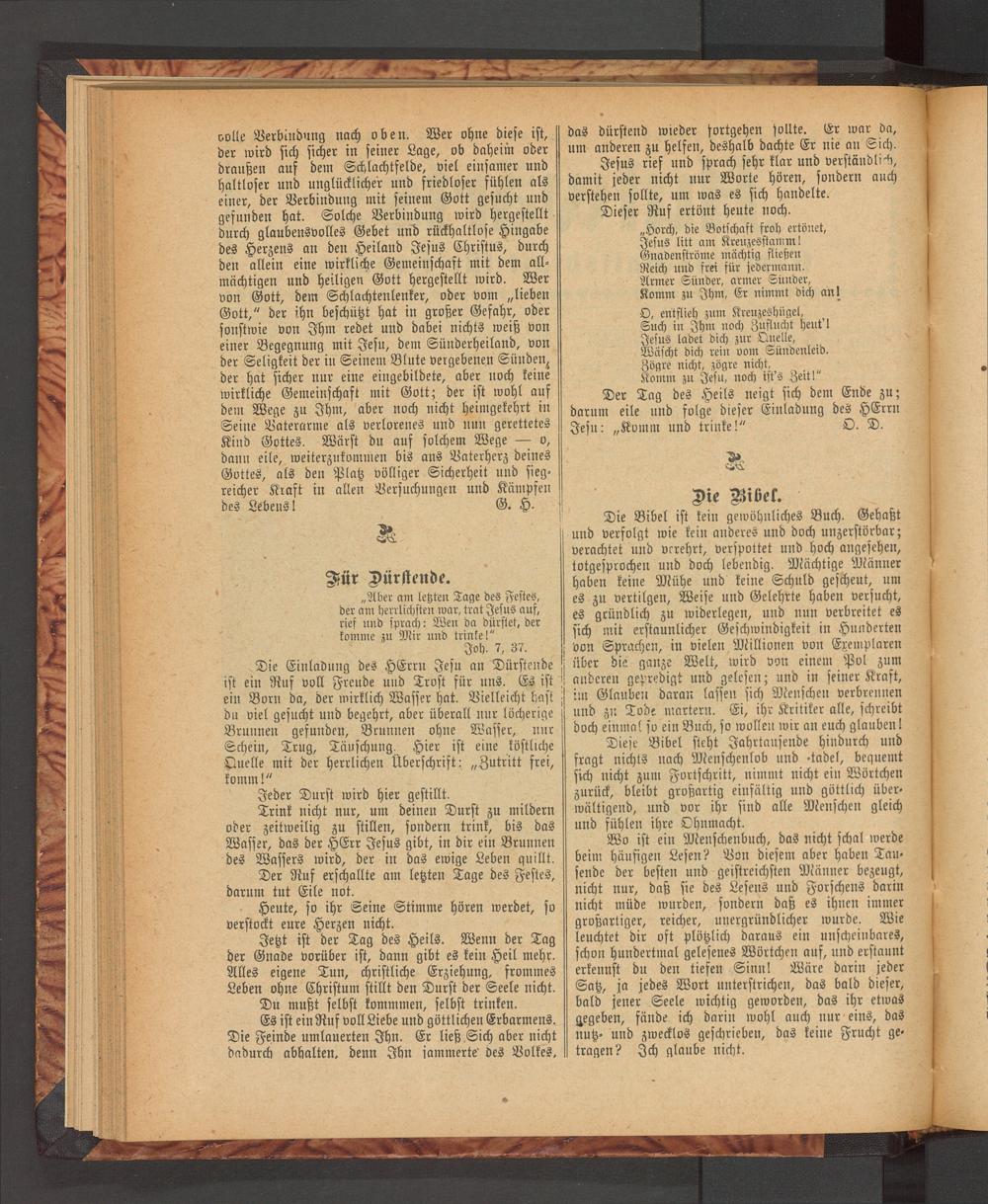 Die Bibel ist kein gewöhnliches Buch. Gehaßt und verfolgt wie kein anderes und doch unzerstörbar; verachtet und verehrt, verspottet und hoch angesehen, totgesprochen und doch lebendig. Mächtige Männer haben keine Mühe und keine Schuld gescheut, um es zu vertilgen, Weise und Gelehrte haben versucht, es gründlich zu widerlegen, und nun verbreitet es sich mit erstaunlicher Geschwindigkeit in Hunderten von Sprachen, in vielen Millionen von Exemplaren über die ganze Welt, wird von einem Pol zum anderen gepredigt und gelesen; und in seiner Kraft, im Glauben daran lassen sich Menschen verbrennen und zu Tode martern. Ei, ihr Kritiker alle, schreibt doch einmal so ein Buch, so wollen wir an euch glauben!