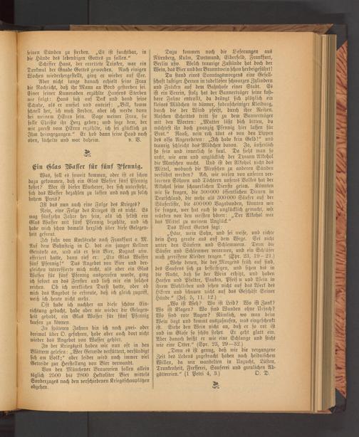 Oft habe ich nachher an diese schöne Einrichtung gedacht, habe aber nie wieder die Gelegenheit gehabt, ein Glas Wasser für fünf Pfennig kaufen zu können.