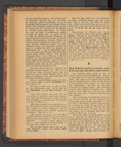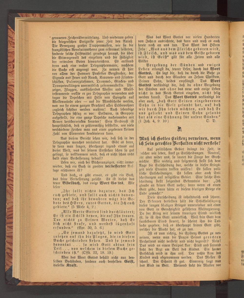 Und doch,» es gibt etwas, es gibt ein Buch, das keine Verbesserung zuläßt. Es ist dieses das teure Bibelbuch, das ewige Wort Gottes. Wir lesen -
