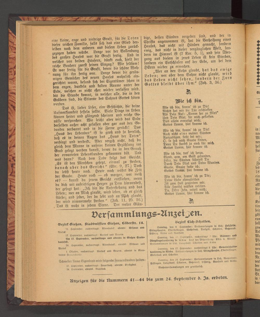 Sonntag den 24 September: Beriammlungen in Lich. Watzenborn. V,Hingen. Langsdorf. Schotten. Betzenrod. Lißberg. Ranstadl und Ard