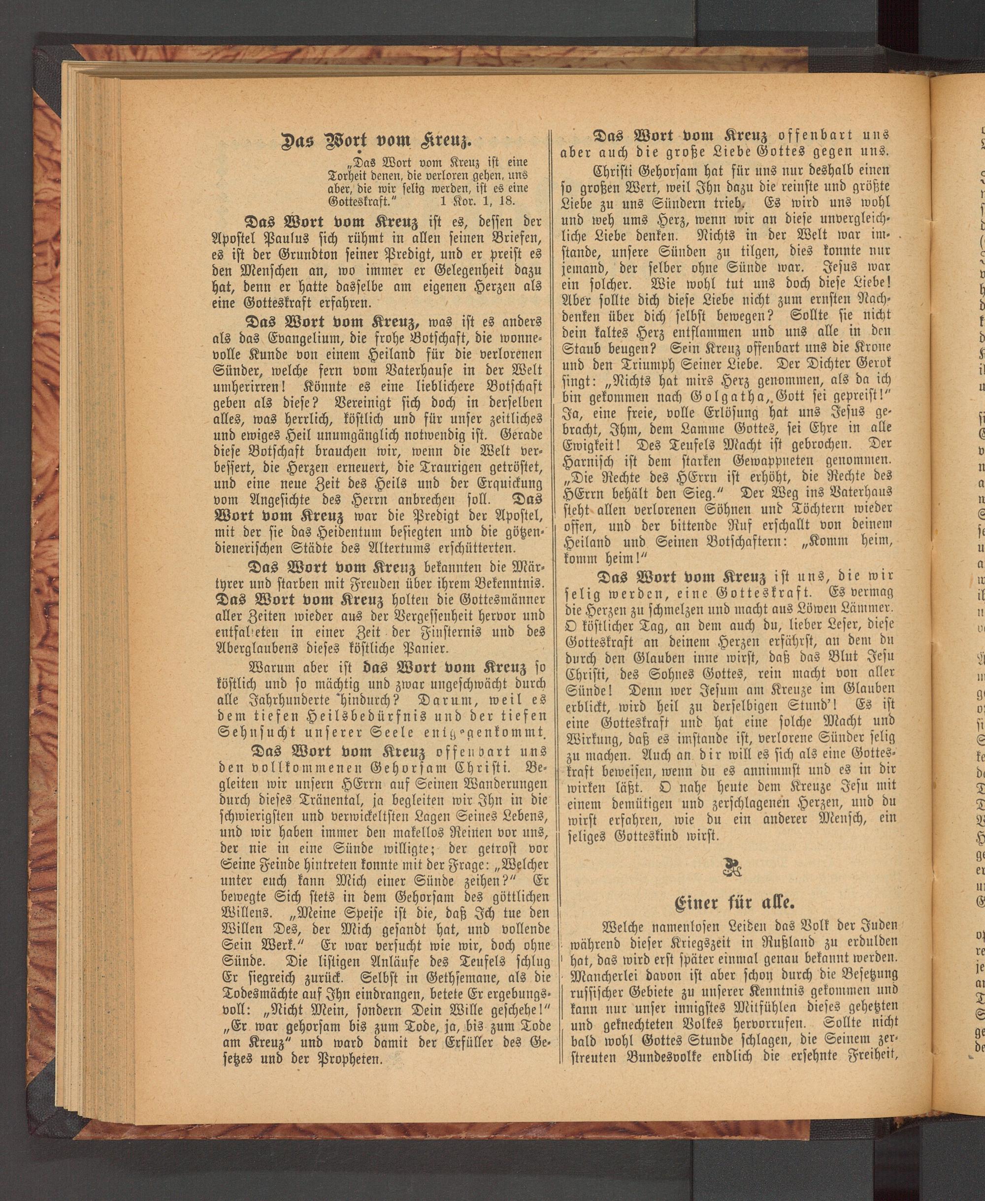 Das Wort vom Kreuz ist es, dessen der Apostel Paulus sich rühmt in allen seinen Briefen, es ist der Grundton seiner Predigt, und er preist es den Menschen an, wo immer er Gelegenheit dazu hat, denn er hatte dasselbe am eigenen Herzen als eine Gotteskraft erfahren.