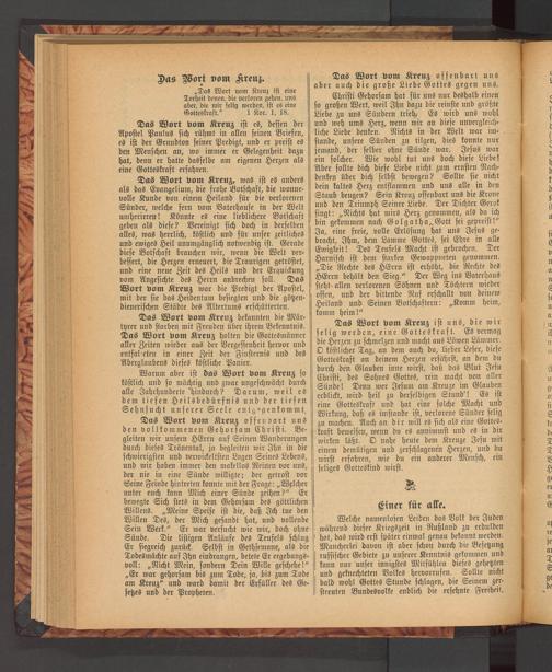 Das Wort Vom Kreuz, was ist es anders als das Evangelium, die frohe Botschaft, die wonne- volle Kunde von einem Heiland für die verlorenen Sünder, welche fern vom Vaterhause in der Welt umherirren I Könnte es eine lieblichere Botschaft geben als diese? Vereinigt sich doch in derselben alles, was herrlich, köstlich und für unser zeitliches und ewiges Heil unumgänglich notwendig ist. Gerade diese Botschaft brauchen wir, wenn die Welt verbessert, die Herzen erneuert, die Traurigen getröstet, und eine neue Zeit des Heils und der Erquickung vom Angesichte des Herrn anbrechen soll. Das Wort vom Kreuz war die Predigt der Apostel, mit der sie das Heidentum besiegten und die götzendienerischen Städte des Altertums erschütterten.