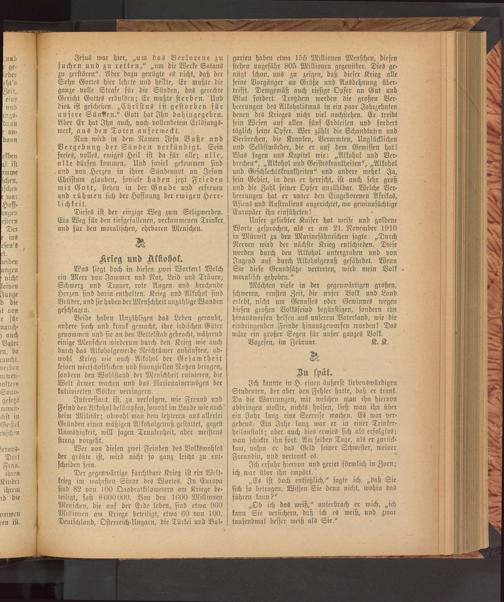 Was liegt doch in diesen zwei Worten! Welch ein Meer von Jammer und Not, Leid und Tränen, Schmerz und Trauer, rote Augen und brechende Herzen sind darin enthalten. Krieg und Alkohol sind Brüder, und sie haben der Menschheit unzählige Wunden geschlagen.