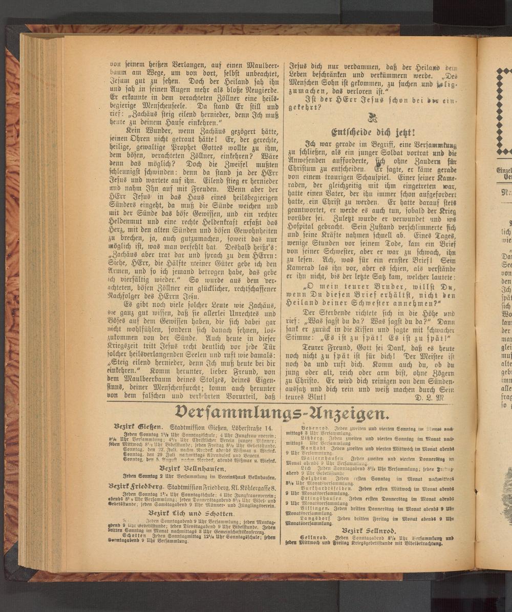 Sellnrod. Jeden Sonntagabend 87. Uhr Versammlung and tedeo Mittwoch und Freitag Kriegsgebetsstunde mit Bibelbetrachtung.