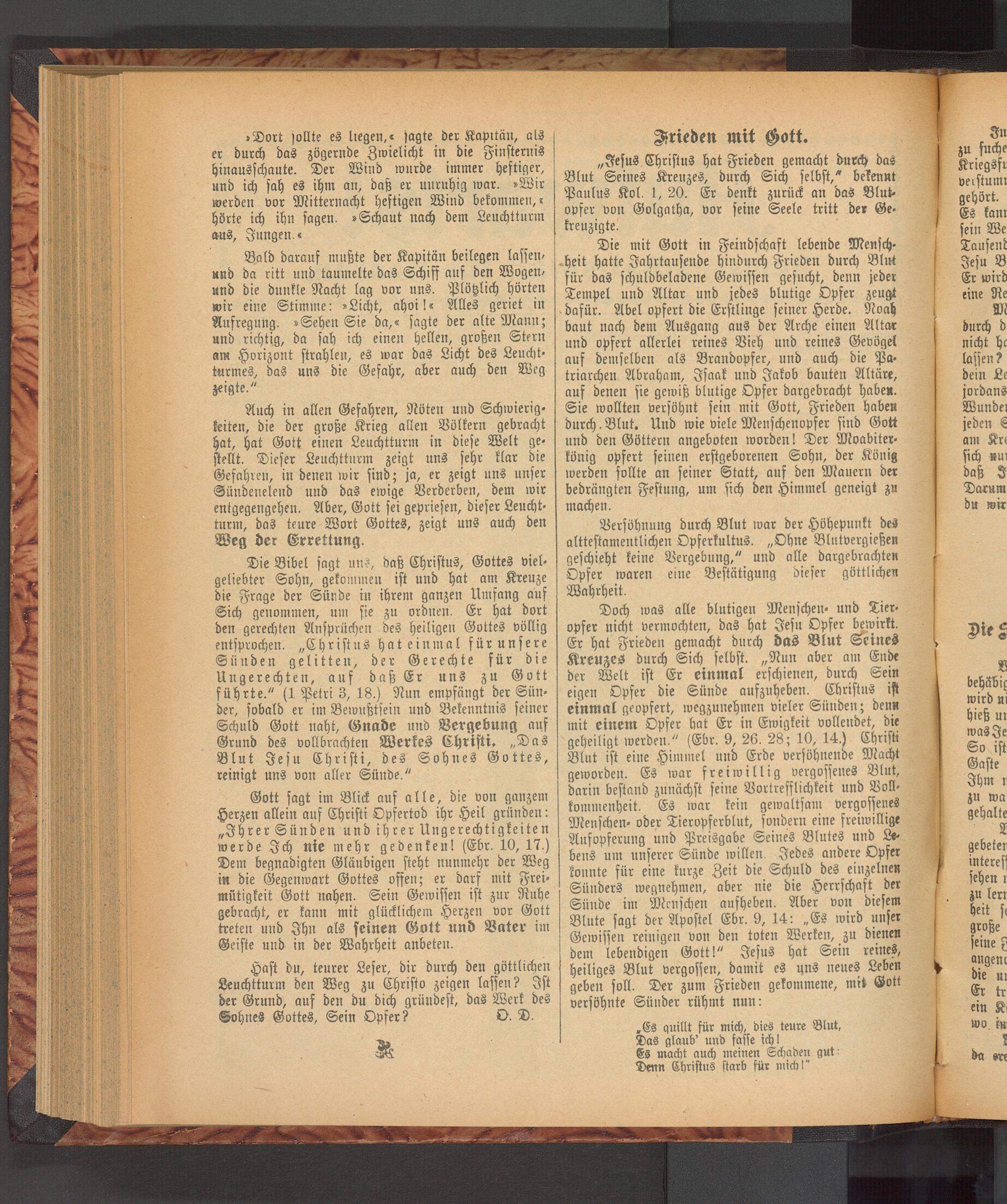Hast du, teurer Leser, dir durch den göttlichen Leuchtturm den Weg zu Christo zeigen lassen? Ist der Grund, auf den du dich gründest, das Werk des Sohnes Gottes, Sein Opfer? O. D.