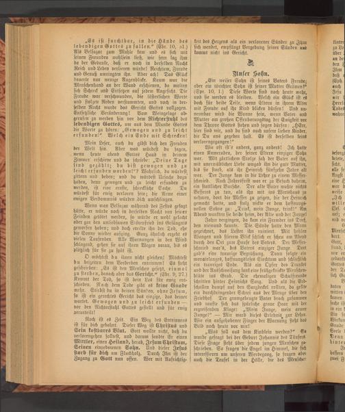 Wie oft ist's anders, ganz anders! Ich hatte einen Kameraden, der seiner Eltern einziger Sohn war. Mit zärtlichem Stolze sah der Vater auf ihn, mit unermüdlicher Liebe umgab ihn die gute Mutter, bis sie starb, als ihr Heinrich fünfzehn Jahre alt war. Der Junge kam in die Lehre zu einem Messer- schmied. Nach Jahresfrist war er zu Besuch daheim, ein stattlicher Bursche. Der alte Vater wußte nichts Besseres zu tun, als ihn mit ins Wirtshaus zu nehmen, dort die Messer zu zeigen, die der Heinrich gemacht hatte, und stolz nickte er dem hoffnungs- vollen Sohne zu: „Trink, mein Junge, trink!" Am Abend wankten sie beide heim, der Alte und der Junge!