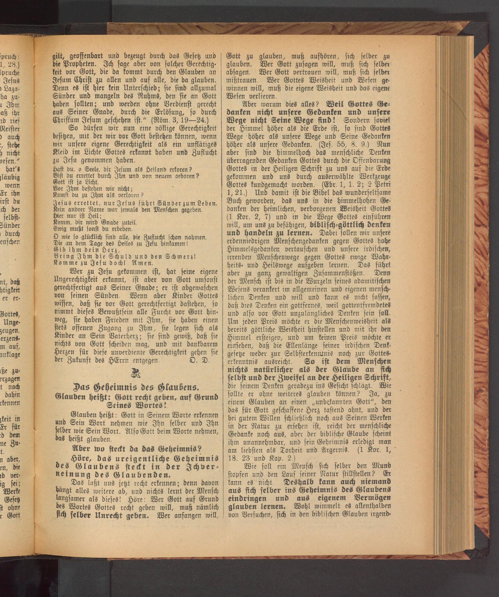 Wer zu Jesu gekommen ist, hat seine eigene Ungerechtigkeit erkannt, ist aber von Gott umsonst gerechtfertigt aus Seiner Gnade; er ist abgewaschen von seinen Sünden. Wenn aber Kinder Gottes wissen, daß sie vor Gott gerechtfertigt dastehen, so nimmt dieses Bewußtsein alle Furcht vor Gott hinweg, sie haben Frieden mit Ihm, sie haben einen stets offenen Zugang zu Ihm, sie legen sich als Kinder an Sein Vaterherz; sie sind gewiß, daß sie nichts von Gott scheiden mag, und mit dankbarem Herzen für diese unverdiente Gerechtigkeit gehen sie der Zukunft des HErrn entgegen O. D.