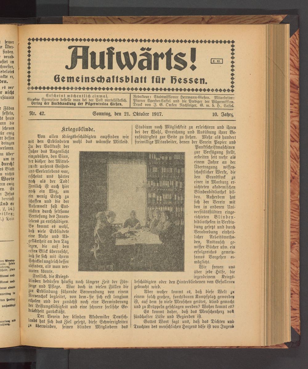 Redakteur: Stadtmissionar Herrmann-Gießen. Mitarbeiter: