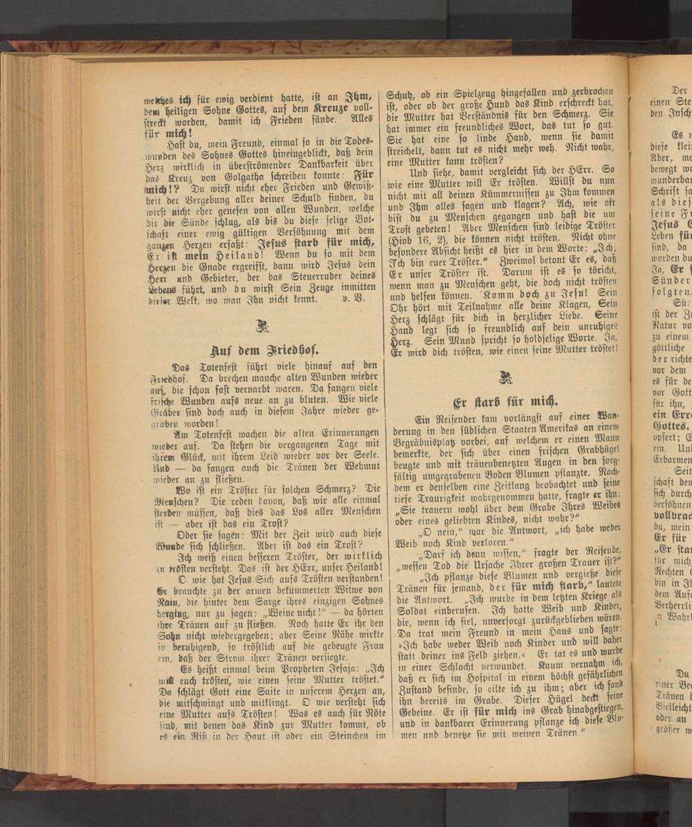 Das Totenfest führt viele hinauf auf den Friedhof. Da brechen manche alten Wunden wieder aus, die schon fast vernarbt waren. Da fangen viele frische Wunden aufs neue an zu bluten. Wie viele Gräber sind doch auch in diesem Jahre wieder ge- graben worden!
