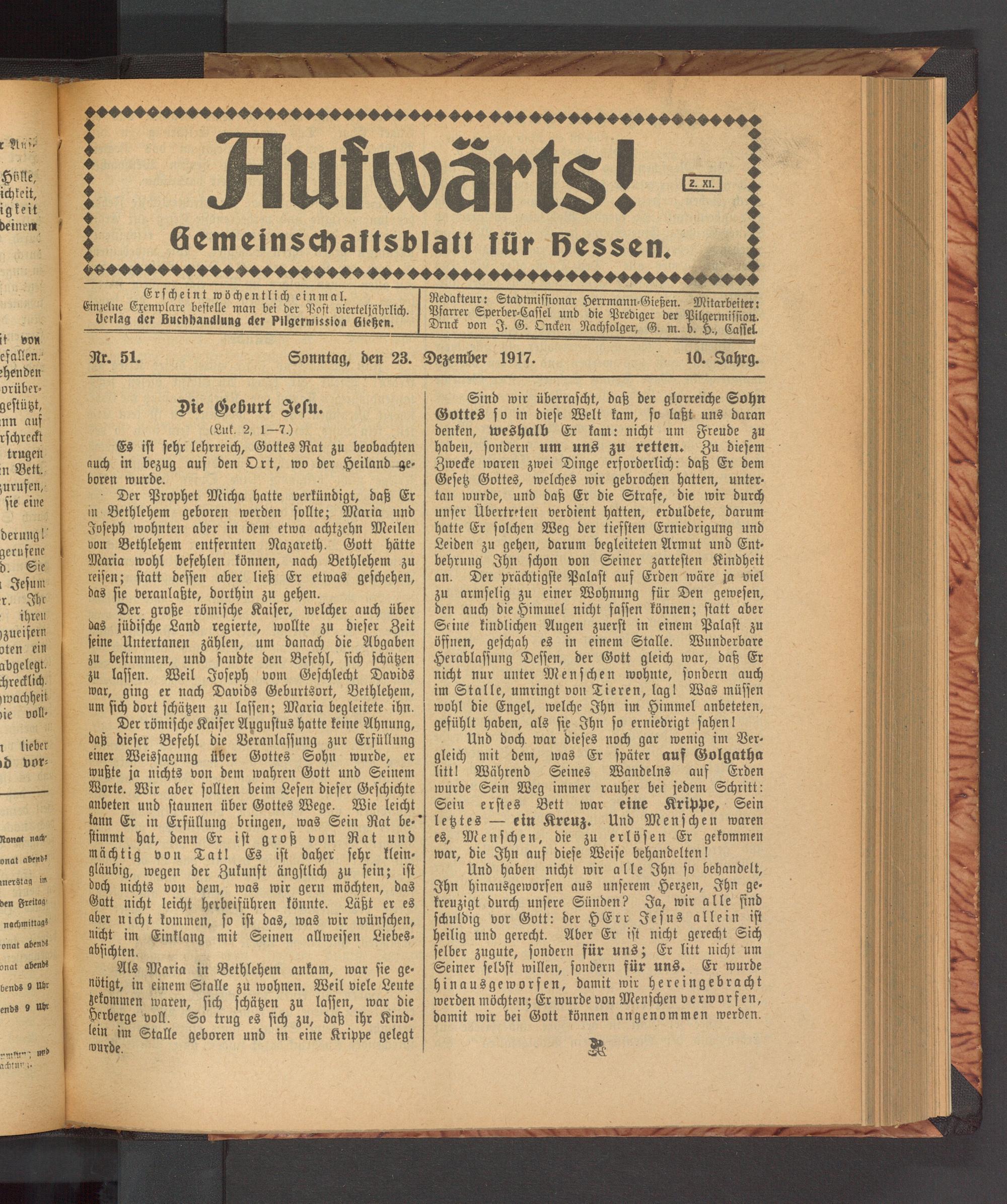 Redakteur: Stadtmissionar Herrmann-Gießen. Mitarbeiter: