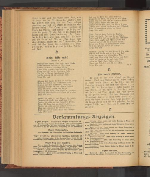 Jeden Sonntag, »achm. 2 Uhr Sonntagsfchnle; abends 8‘/i Uhr Versammlung; jeden Donnerstagabend 8‘/s Uhr Bibel- und Gebetsstnnde.