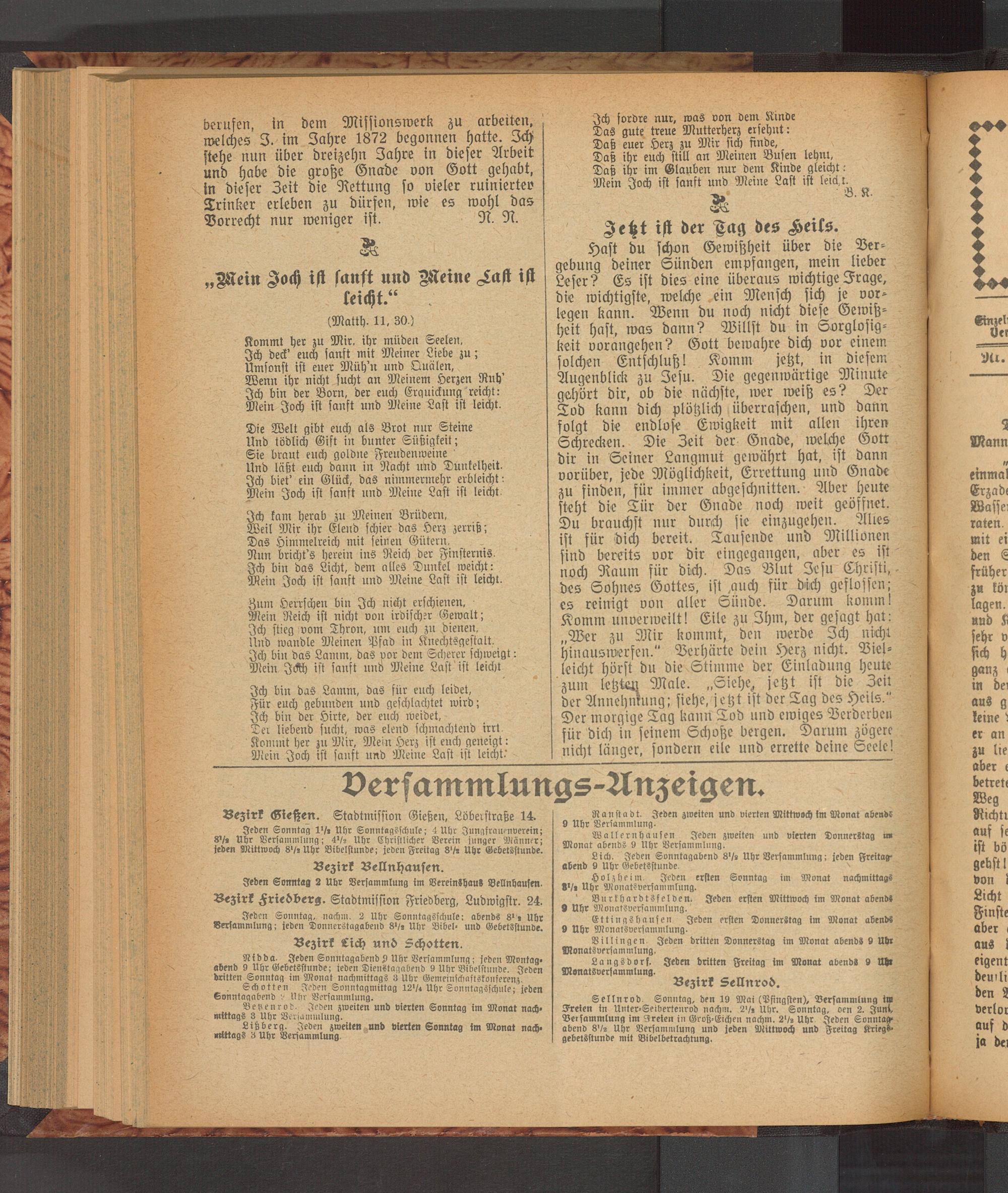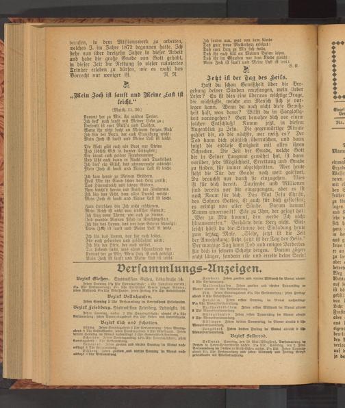 Lich. Jeden Sonntagabend 8 '/s Uhr Versammlung: jeden Freitagabend 9 Uhr Gebetsstunde.