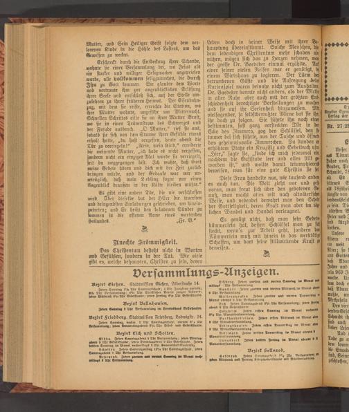 Ribb». Jeden konnl-gabend 9 Udr Versammlung: jeden Montag- tfemb 9 Udr Gebelsftunde i jeden Dtenilagadend 9 Udr Bibelslunde. Jede» drMe» Sonntag im Monat nachmittag« 8 Udr Geme,nschaltslonserenz