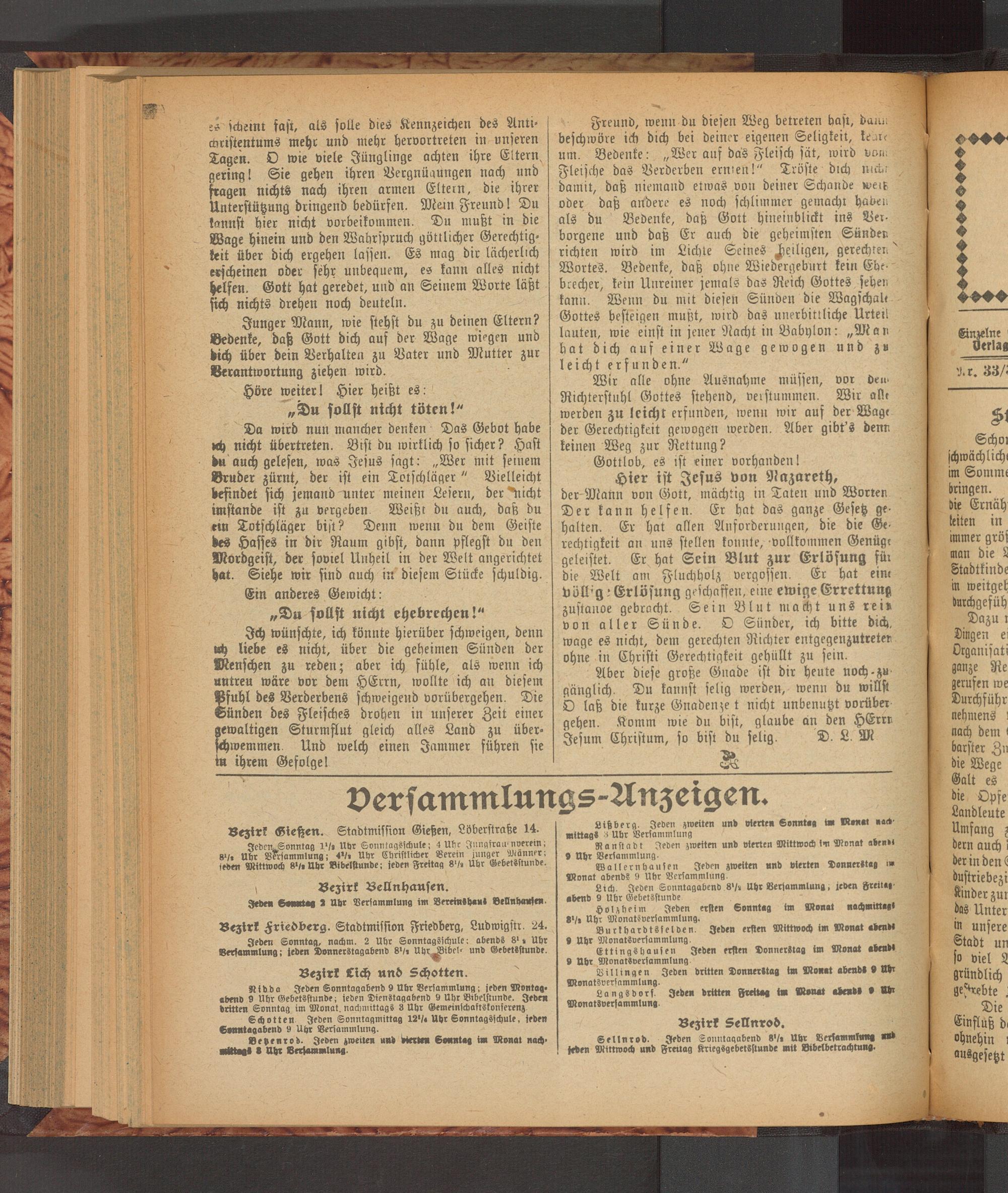 Sellnrod. Jeden Sonntagabend 8'/, Uhr Verlammlung «nd jeden Mittwoch und Freitag KriegsgebelSstunde mit iStbelbctrachtnn«.