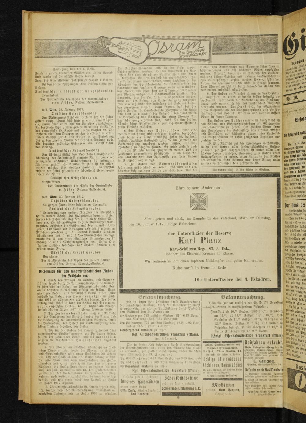 Allzeit getreu und stark, im Kampfe für das Vaterland, starb am Dienstag, den 16. Januar 1917, infolge Halsschuss