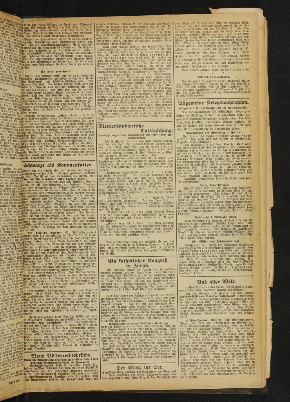 Am Montag wurde in Zürich ein Katholikenkongreß eröffnet, der drei Tage dauern und Vertreter der katholischen Bevölkerung aus verschiedenen Staaten zur Aussprache über gemeinsame Angelegenheiten der katholischen Kirche inmitten des Weltkrieges versammeln will. Neben deutschen Katholiken, werden