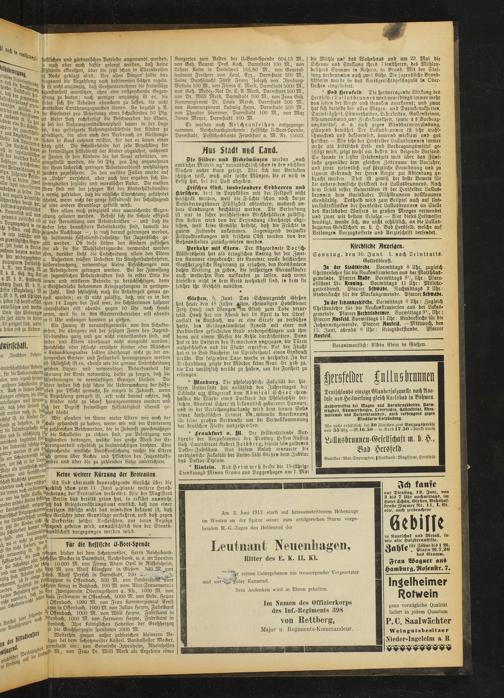 Un der TobannesKircbe. Vormittags 8 Uhr: Zugleich Christenlehre für die Neukonsicmierten aus der Lukasgemeinde. Pfarrer vecdtoirdeimer. Vormittags 9 l / 2 U&c: Pfarrer flttsfeld. Vormittags 11 Uhr: Kinderkirche für die Johannesgemeinde. Pfarrer Antfeld. — Mittwoch, den 13. Juni, abends 8 Uhr: Kciegsbetstunde. Pfarrer Antfeld.