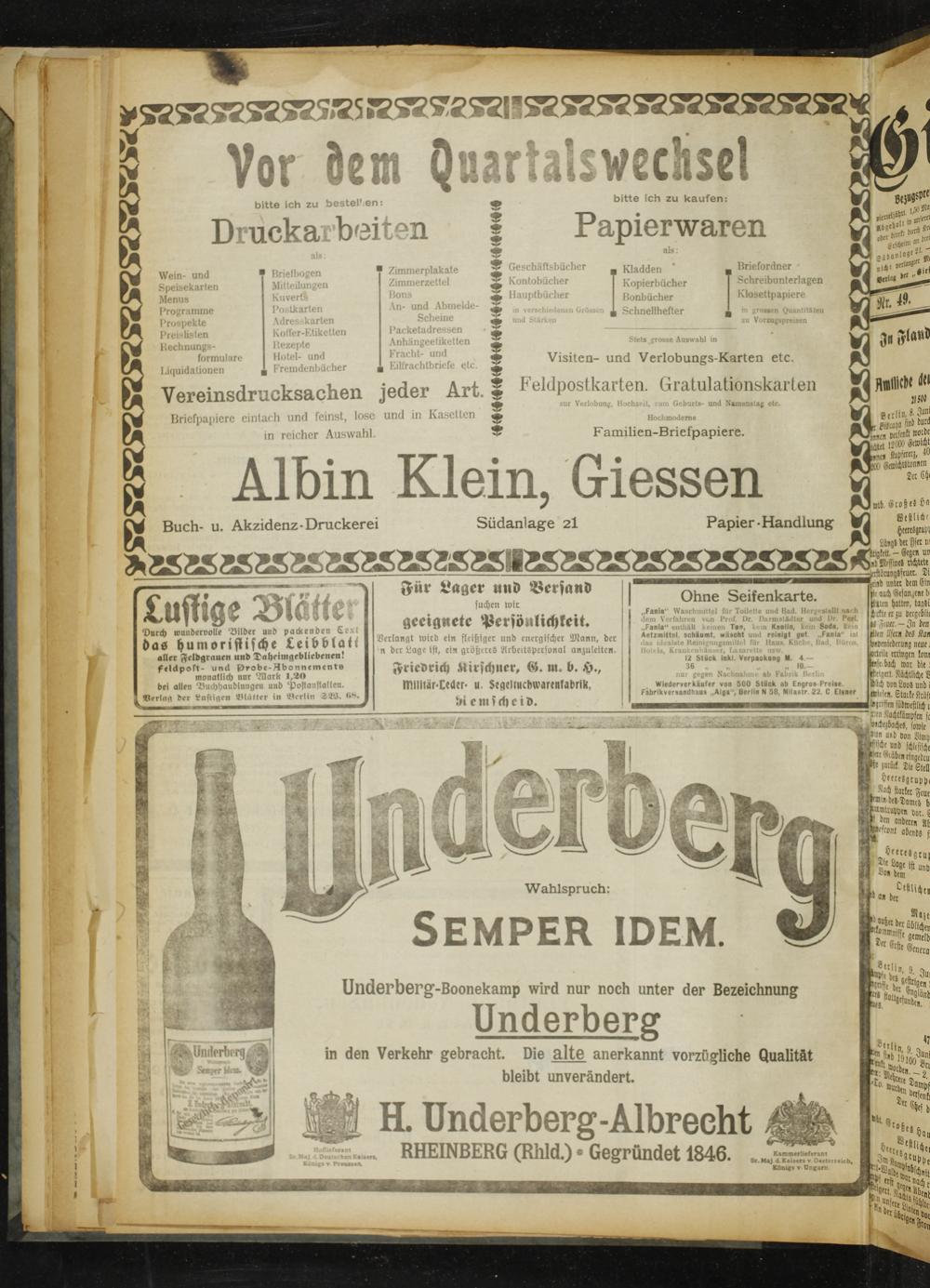 aller feldgrauen und Daheimgebliebeneu! feläpoR- und lSrobe-Abonnenienrs monatlich nnr Blark 1.20 bei allen Buchhandlungen und Postanstalkeu. Verlag der lustigen Blätter in Berlin 2W. B8*