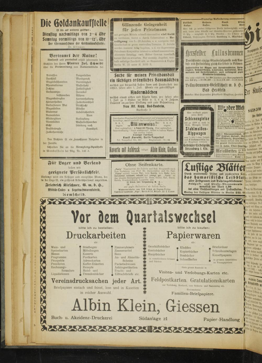 ,,Fania‘‘ Waschmittel für Toilette und Bad. Hcrgestellt nach dem Verfahren von Prof Dr. DarmstÄdter und Dr. Perl. , Fanla" enthält keinen To*\ kein Kaolin, kein Soda, kein Aetzmlttel. schäumt, wäscht und reinigt gut. „Fanla 1 i»t das idealste Reinigungsmittel für Haus. Küche, Bad, Büros, Hotels, Krankenhäuser, Lazarette usw.