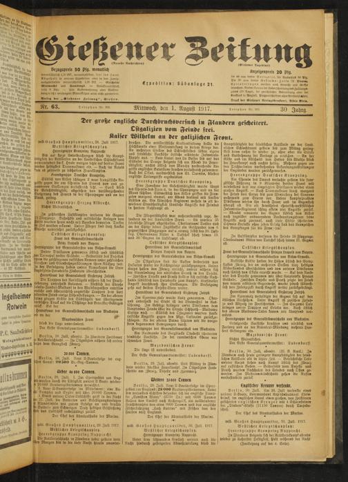 wtb. Großes Hauptquartier, 31. Juli. 1917.