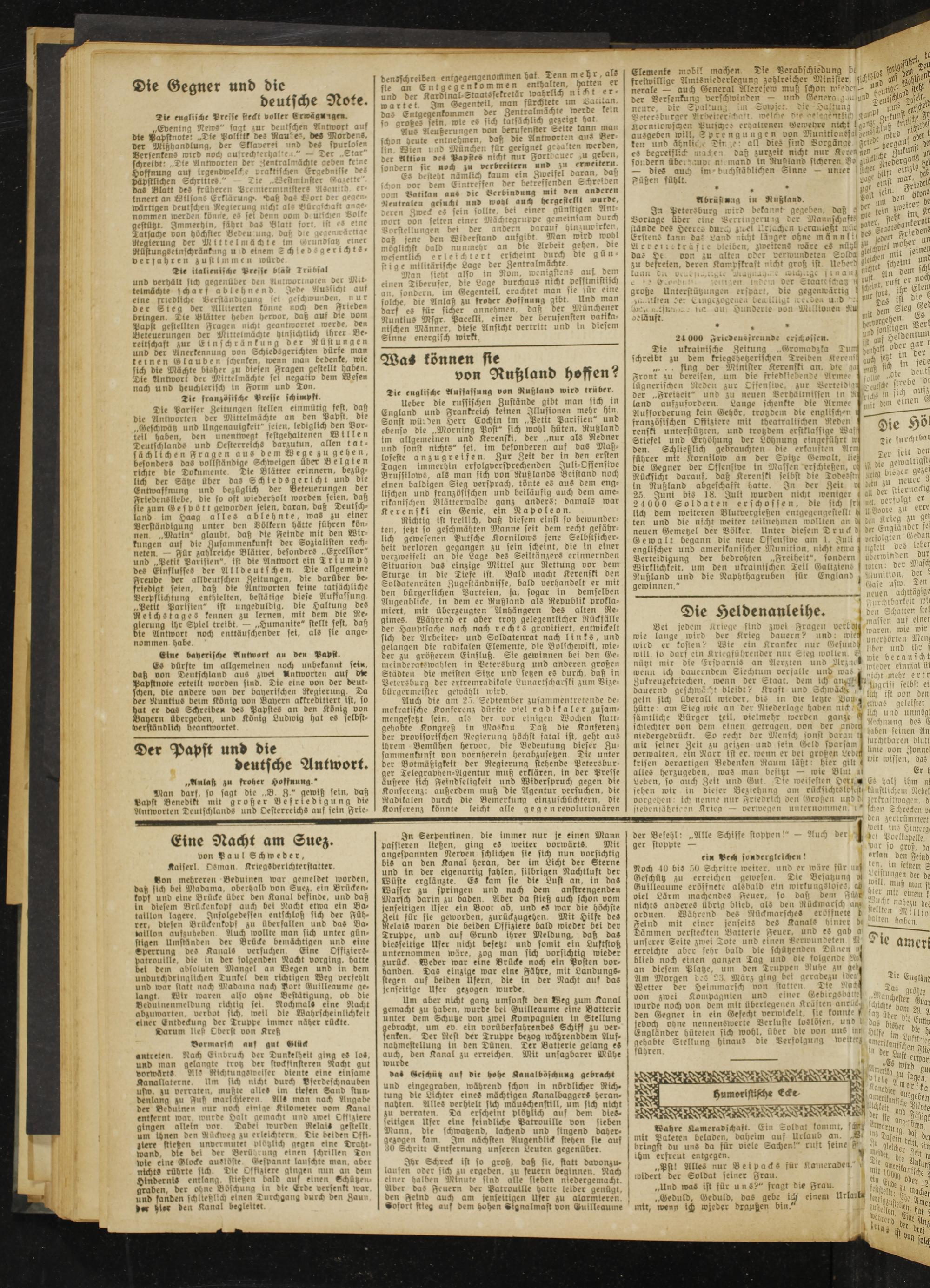 lich dem weiteren Biuwergießen entgegcngestelll ^doore zu ten und die nicht weiter teilnehmen ivotttcn an di den Krieg ö» ß . neuen Gemetzel der Völker. Unter diesem Tr uckd der Engiano^r 1 Gewalt begann die neue Offensive am I. gali l verfolgten mm englischer und amerikanischer Munition, nicht enra z ngkcU des n Verteidigung der bedrohten ..Freiheit", sondern Wirklichkeit, um den ukrainischen Teil Galiziens Rußland und die Naphthagrubcn für England . gewinnen."