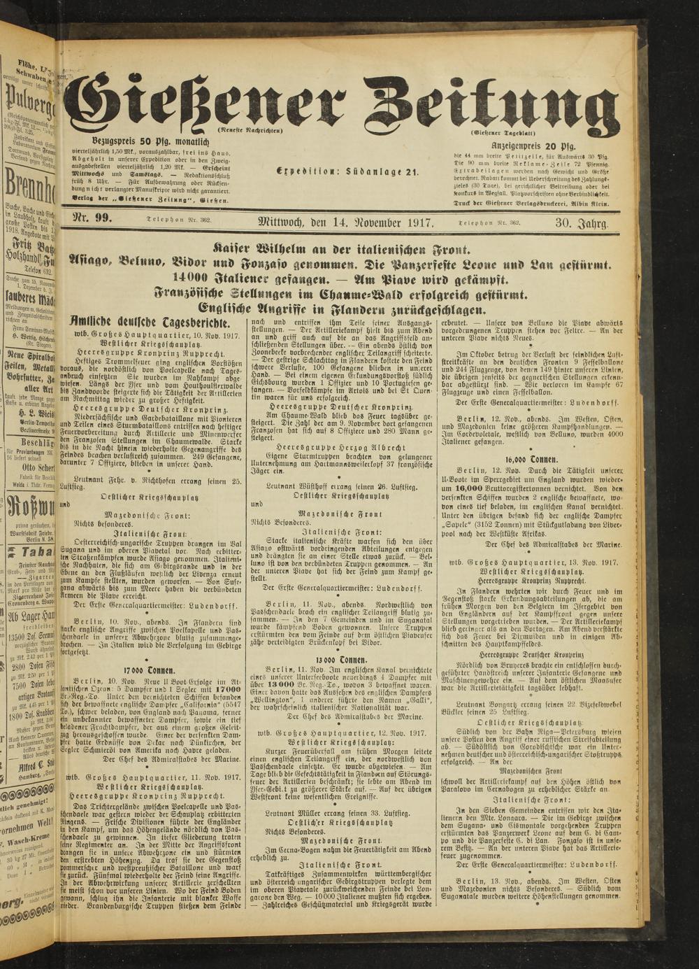 14000 Italiener gefangen. — Am Piave wird gekämpft.