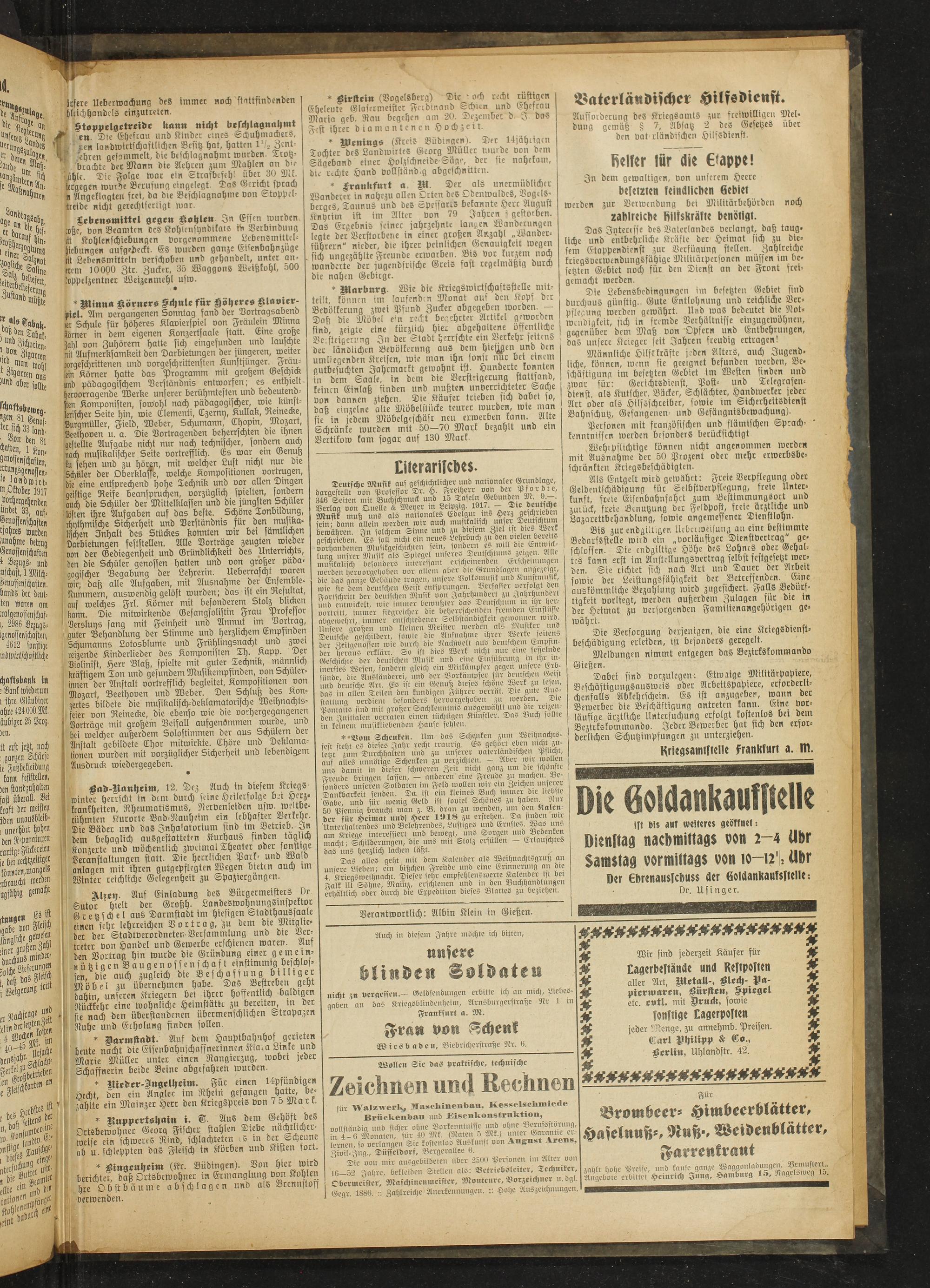 Verantwortlich: Albin Klein in Gießen.