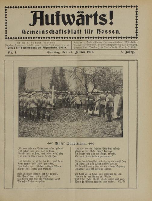 Redakteur: Stadtmissionar Herrmann-Gießen, Mitarbeiter: Pfarrer Sperber-Cassel, Pfarrer Strauß-Leipzig u, d. Predigerd. Pilgermission, Druck v, I. G. Oncken Rachf,, G, m, b, H,, Cassel.