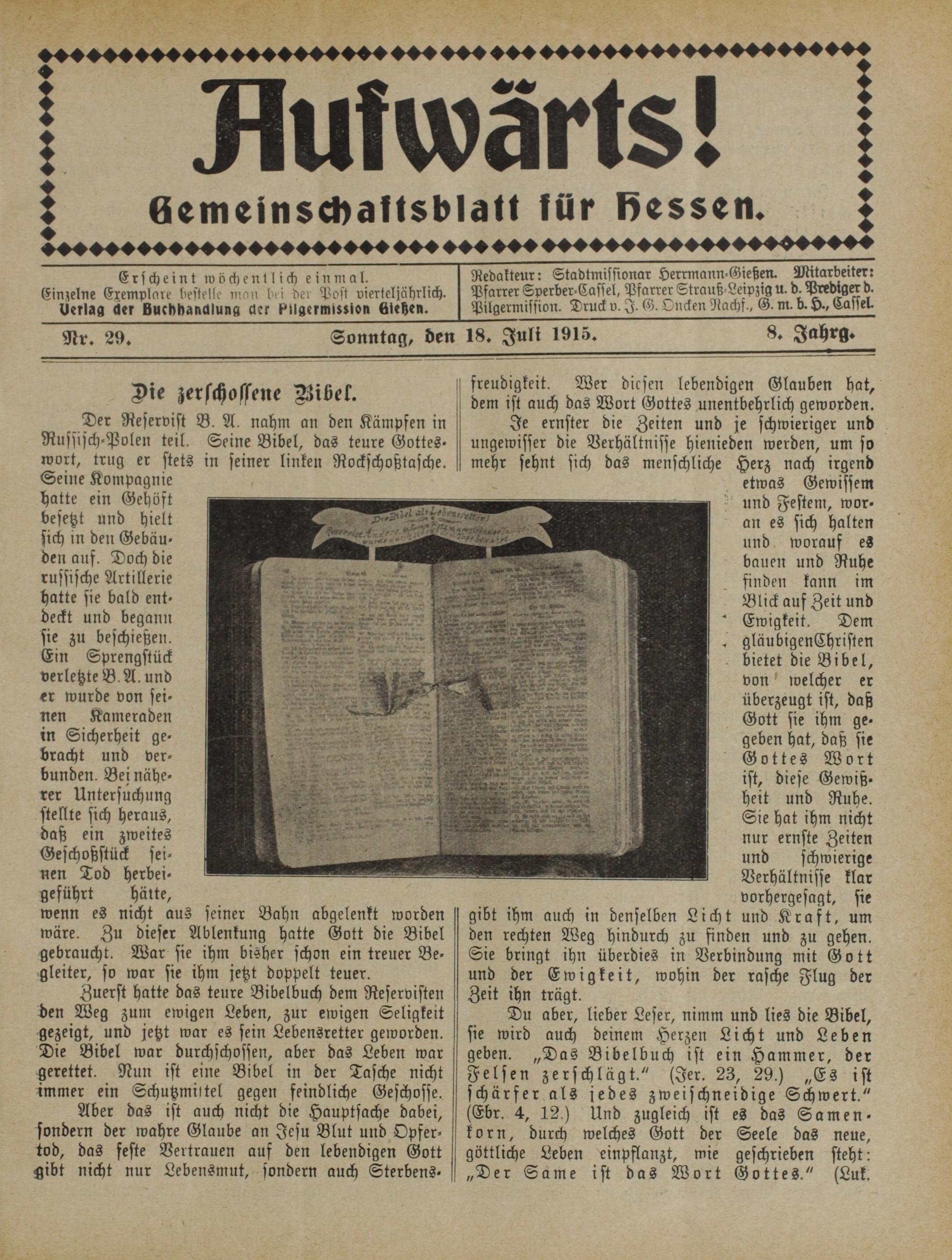 Redakteur: Stadtmissionar Herrmann-Gießen. Mitarbeiter: