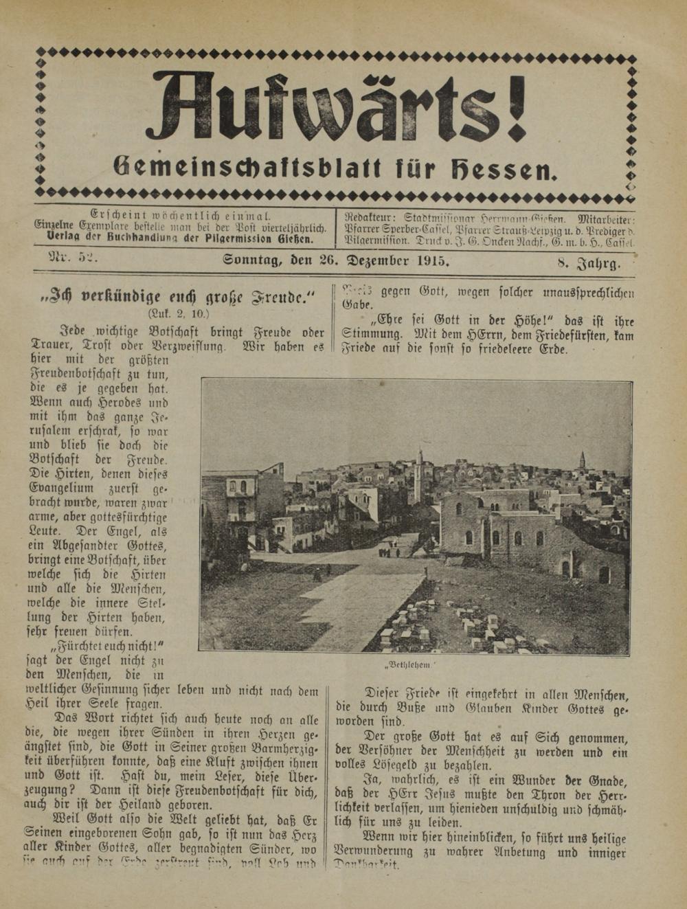 Redakteur: Stadtmiistonar löerrnmnn ließen. Mitarbeiter' Pfarrer Sperber-Cassel, Pfarrer Strauß-Leipzig u. d. Prediger d. Pilgermission. Druck v. I. G. Oncken Nächst, G. m. b. H., Cassel.
