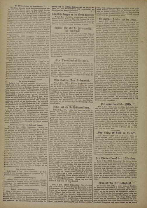 Paris, 2. Jan. (WTB. Nicktamtlich.) Mcllmng der Aaence Havas General Petain hat zu Neujahr einen Tages- befehl an die Armee gerichtet, in dem es u, a. heißt- Die Schwache Nrißlawds hat Eueren Glauben mM erschüttert, der durch den täglich knacksenden Beistand der Nnionstaaten bekräftigt wird. Schließlich erklärte er, daß, wenn der El tafle nach Frieden verlange, der Beharrlichere dessen Ve- omgungen festsetzen werde.