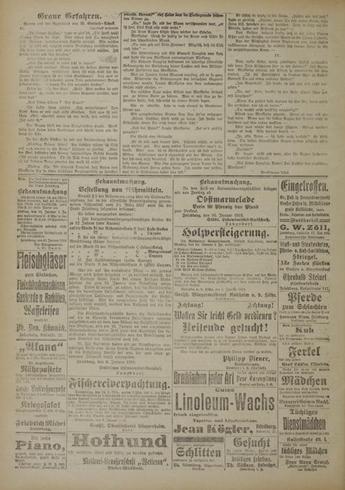 Hierdurch bringe ich zur öffentlichen Kenntnis, daß der Verkauf von Rind- und Kalbfleisch, sowie Wu st jür diese Woche an» Freitag, den 11 . Januar l. Is. von nachmittaag 2—6 Ufjt in den fam lichen hüstgen Metzgeiläden stat! findet.