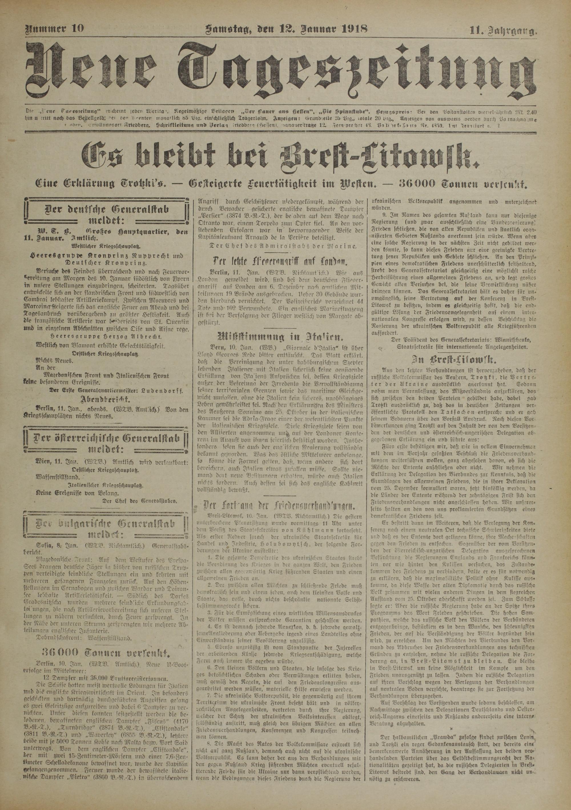 Nummer 10 __ Samstag, den 12. Januar 1918 11. Jahrgang.