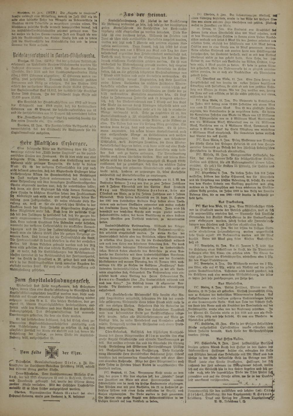 Verantwortlich für den politischen und lokalen Teil: Ott> Hirschel, Friedberg: für den Anzeigenteit: R. Hey ner Frredberg. Druck und Verlag der „Neuen LageKzertung^ A- G.. Jnedbero i. Ä